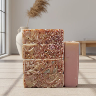 Each batch of Beauty'n Comfort Handcrafted Artisan Soaps are created in small batches with plant based oils and butters at our base in North Texas. Each loaf is cut into bars that are roughly 1" inch thick and weighs approximately 4.5-5 oz (weight varies slightly from bar to bar as we cut them by hand and some designs include frosted tops, glycerin soap embeds and botanicals). Our bar aren't just beautiful to look at, they have a moisturizing rich lather that is a dream to your senses.